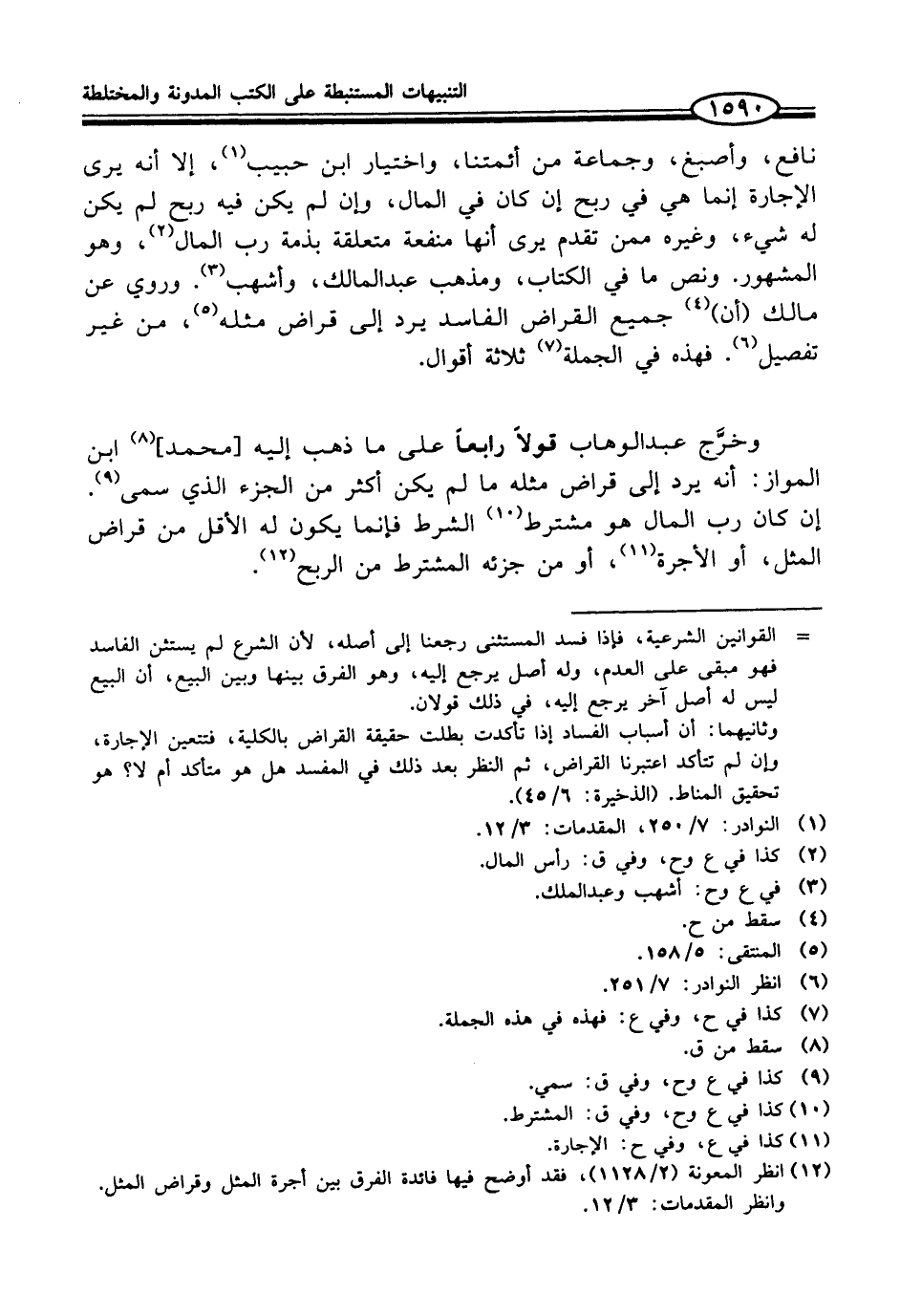 (¬12) انظر المعونة (2/ 1128)، فقد أوضح فيها فائدة الفرق بين أجرة المثل وقراض المثل. وانظر المقدمات: 3/ 12.