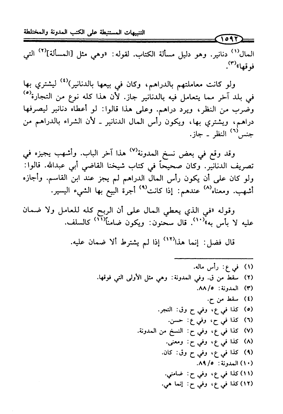المال (¬1) دنانير. وهو دليل مسألة الكتاب. لقوله: "وهي مثل [المسألة] (¬2) التي فوقها" (¬3).