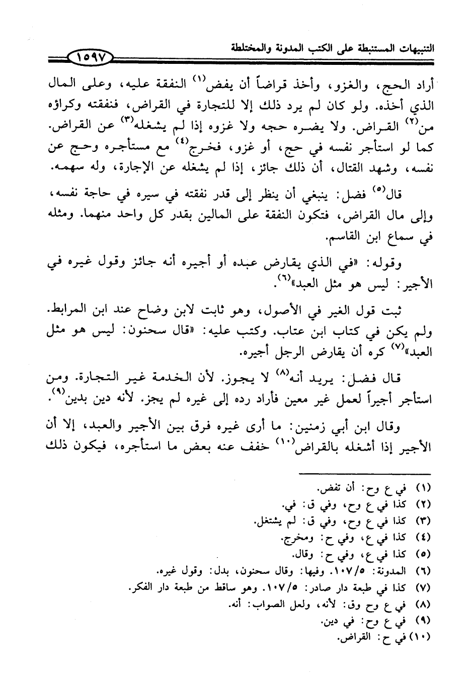 ثبت قول الغير في الأصول، وهو ثابت لابن وضاح عند ابن المرابط. ولم يكن في كتاب ابن عتاب. وكتب عليه: "قال سحنون: ليس هو مثل العبد" (¬7) كره أن يقارض الرجل أجيره.