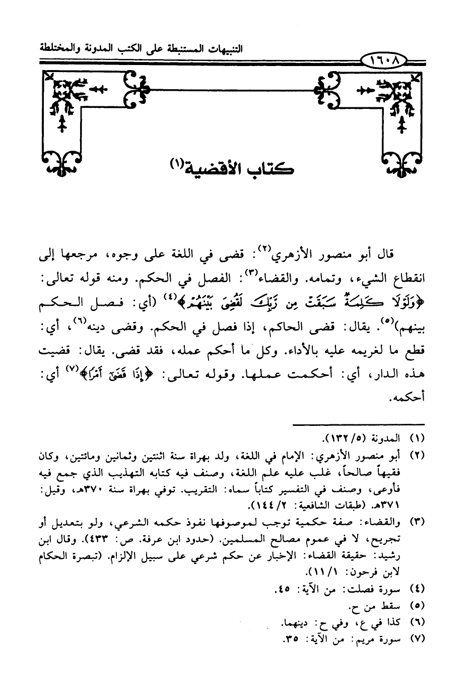 (¬2) أبو منصور الأزهري: الإمام في اللغة، ولد بهراة سنة اثنتين وثمانين ومائتين، وكان فقيهاً صالحاً، غلب عليه علم اللغة، وصنف فيه كتابه التهذيب الذي جمع فيه فأوعى، وصنف في التفسير كتاباً سماه: التقريب. توفي بهراة سنة 370 هـ، وقيل: 371 هـ. (طبقات الشافعية: 2/ 144).