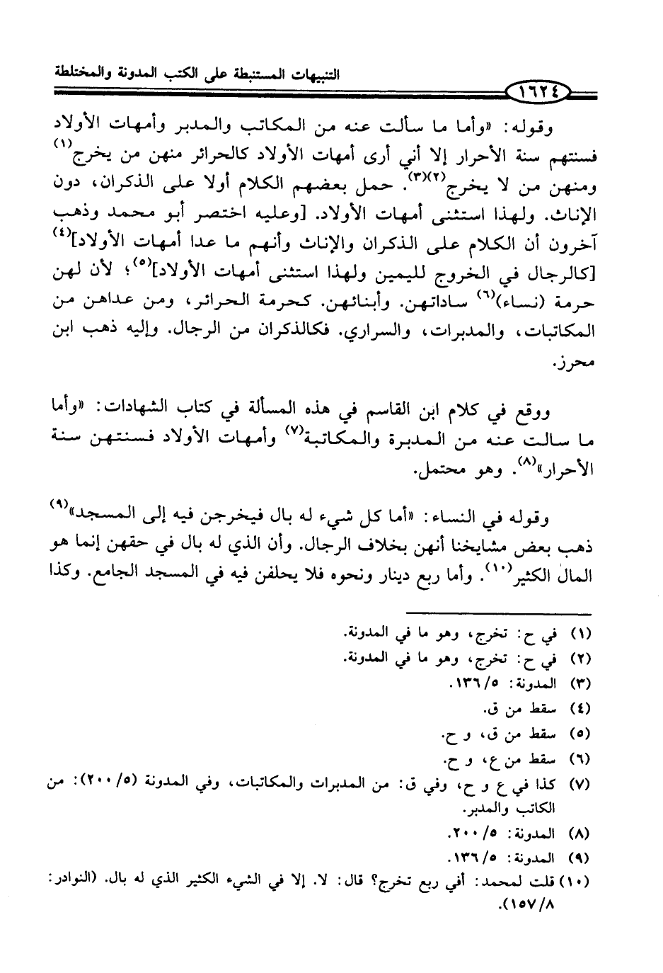 (¬7) كذا في ع وح، وفي ق: من المدبرات والمكاتبات، وفي المدونة (5/ 200): من الكاتب والمدبر.