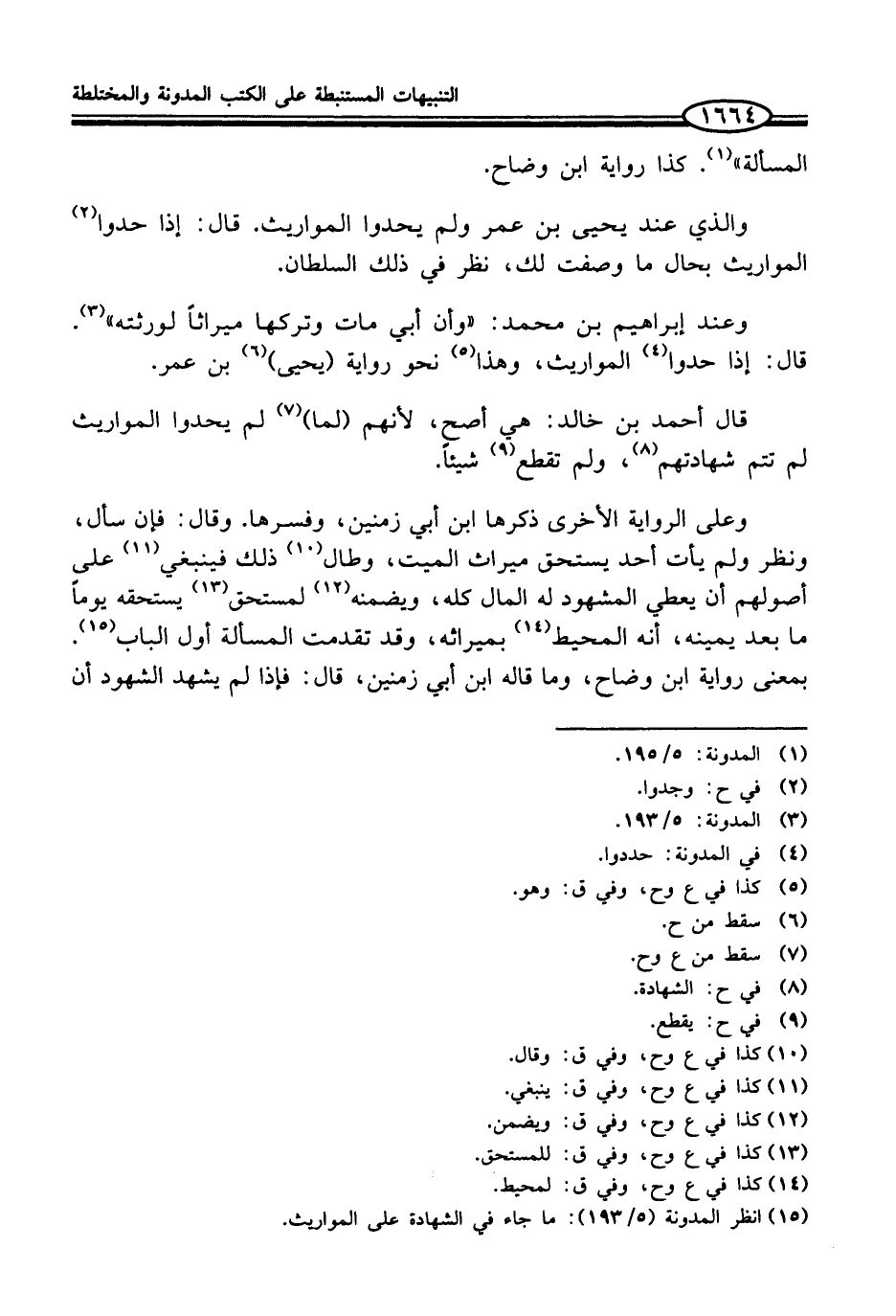 (¬15) انظر المدونة (5/ 193): ما جاء في الشهادة على المواريث.