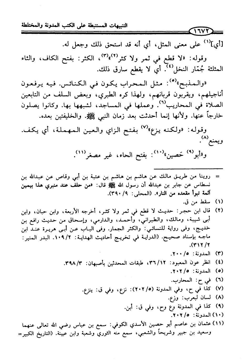 (¬2) قال ابن حجر: حديث لا قطع في ثمر ولا كثر، أخرجه الأربعة، وابن حبان، وابن أبى شيبة، ومالك، والطبراني، وأحمد، والدارمي، وإسحاق من حديث رافع بن خديج، وفى رواية للنسائي: والكثر الجمار. وفى الباب عن أبي هريرة عند ابن ماجه بإسناد صحيح. (الدراية في تخريج أحاديث الهداية: 2/ 109. البدر المنير: 2/ 312).