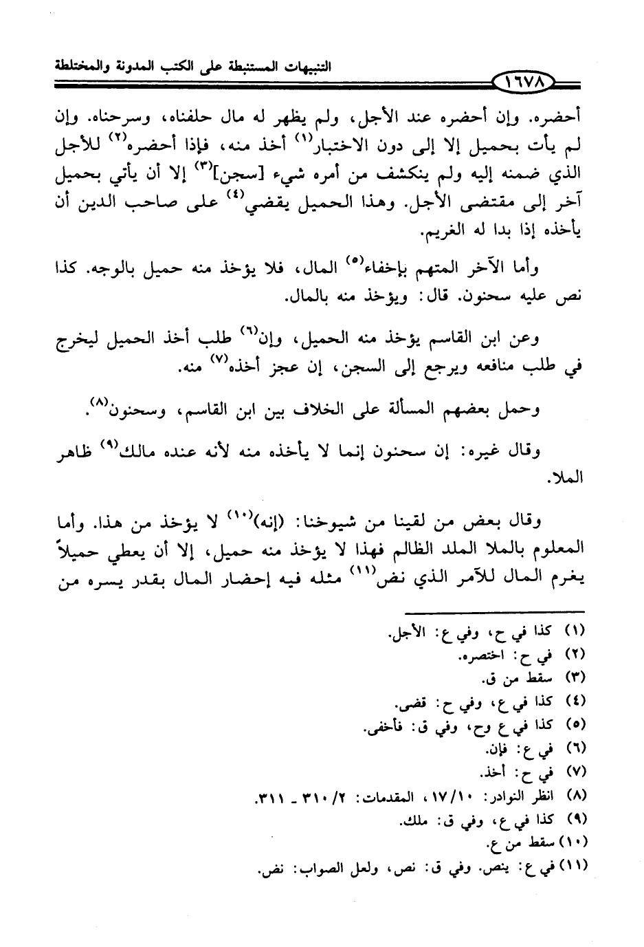 (¬8) انظر النوادر: 10/ 17، المقدمات: 2/ 310 - 311.