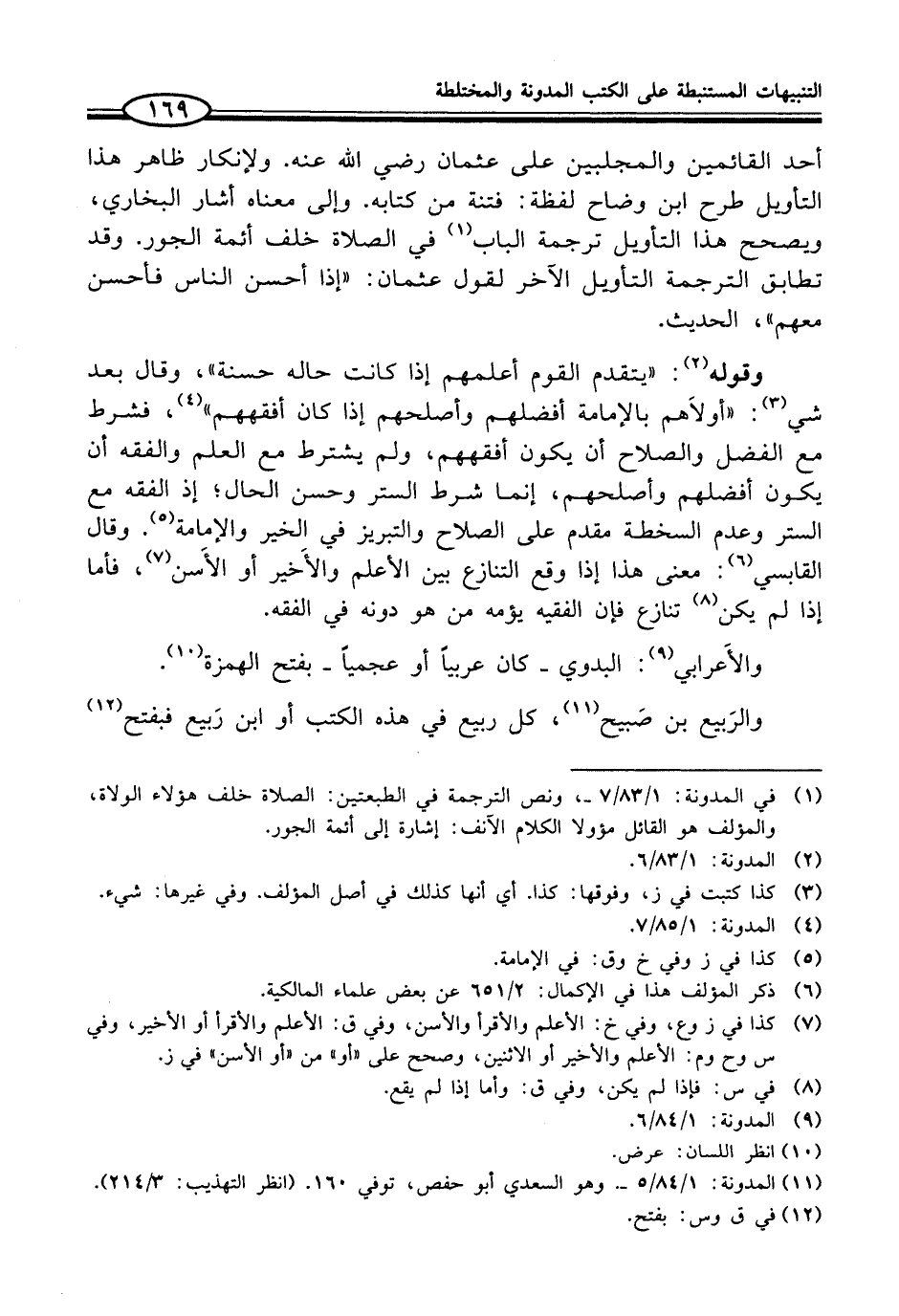 (¬11) المدونة: 1/ 84/ 5 - . وهو السعدي أبو حفص، توفي 160. (انظر التهذيب: 3/ 214).