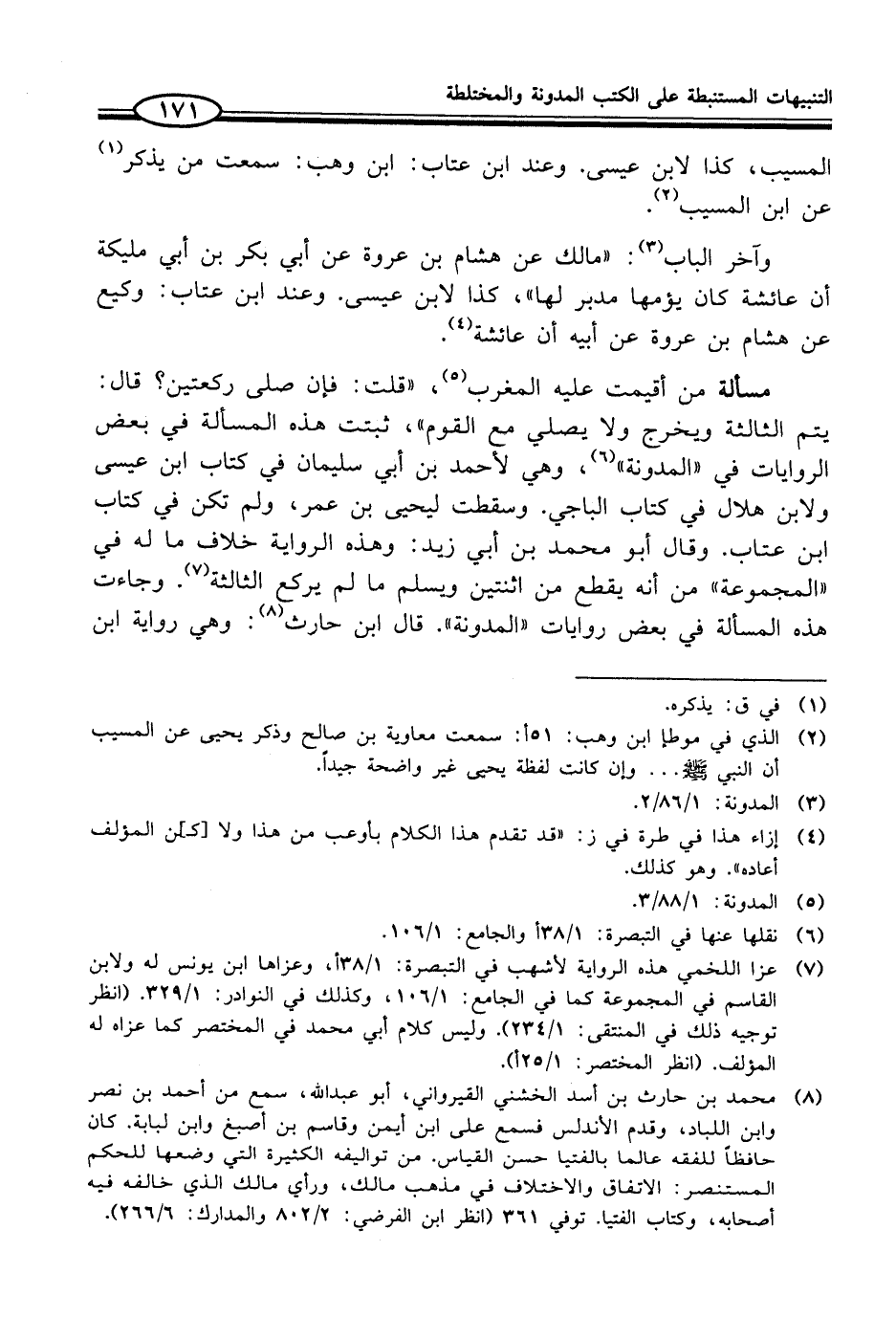 (¬7) عزا اللخمي هذه الرواية لأشهب في التبصرة: 1/ 38 أ، وعزاها ابن يونس له ولابن القاسم في المجموعة كما في الجامع: 1/ 106، وكذلك في النوادر: 1/ 329. (انظر توجيه ذلك في المنتقى: 1/ 234). وليس كلام أبي محمَّد في المختصر كما عزاه له المؤلف. (انظر المختصر: 1/ 25 أ).