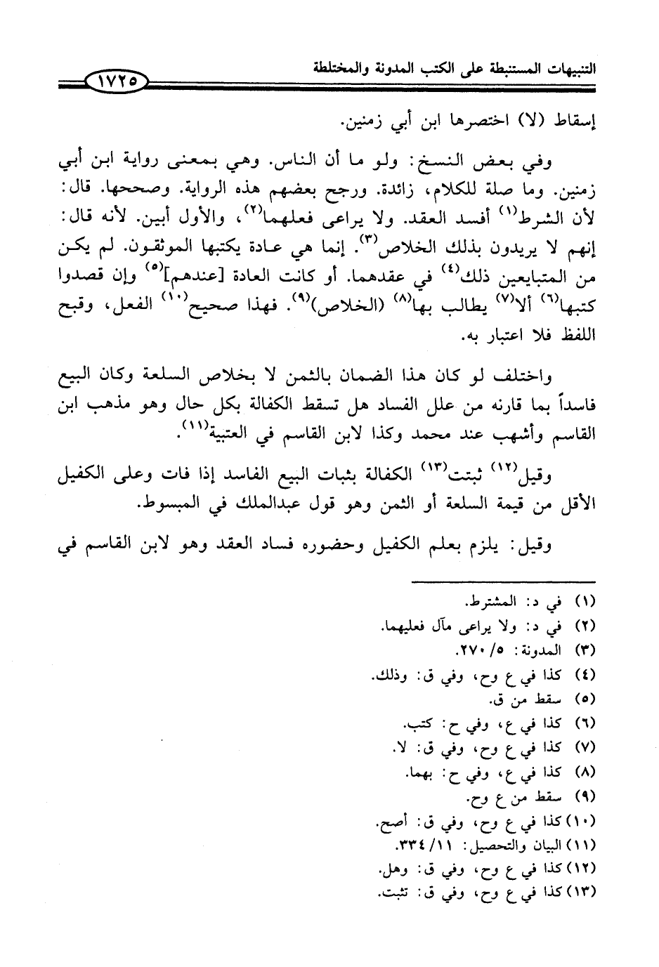 إسقاط (لا) اختصرها ابن أبي زمنين.