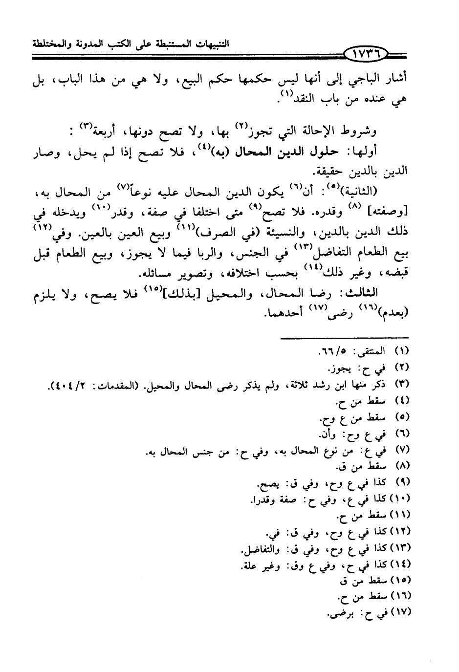 (¬3) ذكر منها ابن رشد ثلاثة، ولم يذكر رضى المحال والمحيل. (المقدمات: 2/ 404).