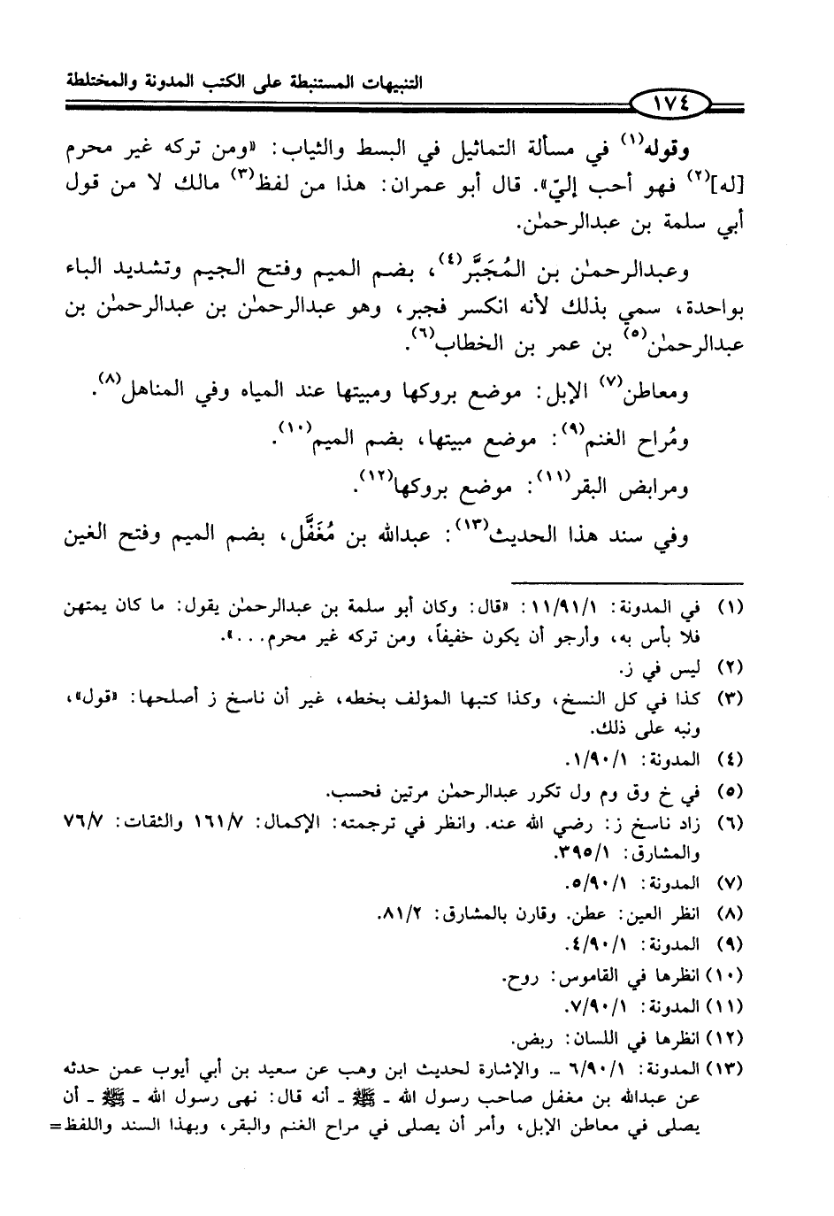(¬13) المدونة: 1/ 90/6 - . والإشارة لحديث ابن وهب عن سعيد بن أبي أيوب عمن حدثه عن عبد الله بن مغفل صاحب رسول الله - صلى الله عليه وسلم - أنه قال: نهى رسول الله - صلى الله عليه وسلم - أن يصلى في معاطن الإبل، وأمر أن يصلى في مراح الغنم والبقر، وبهذا السند واللفظ =