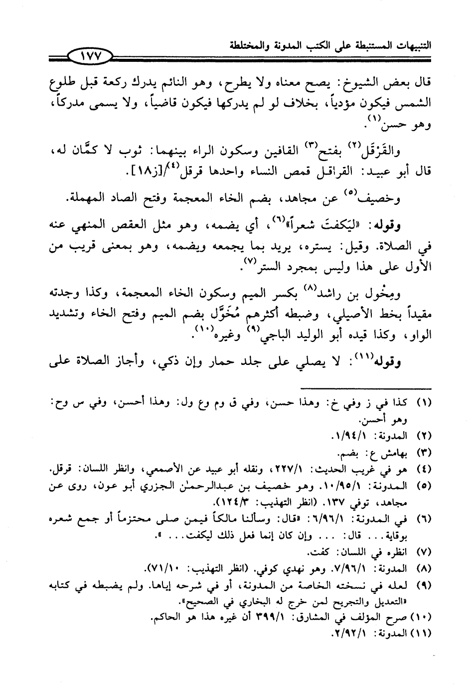 (¬5) المدونة: 1/ 95/ 10. وهو خصيف بن عبد الرحمن الجزري أبو عون، روى عن مجاهد، توفي 137. (انظر التهذيب: 3/ 124).