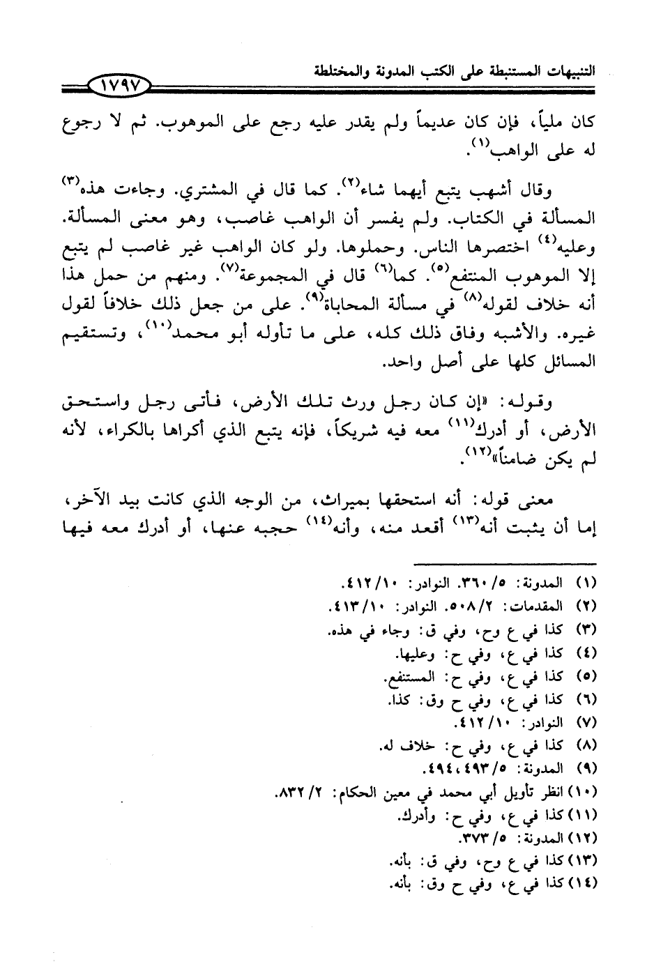 (¬1) المدونة: 5/ 360. النوادر: 10/ 412.