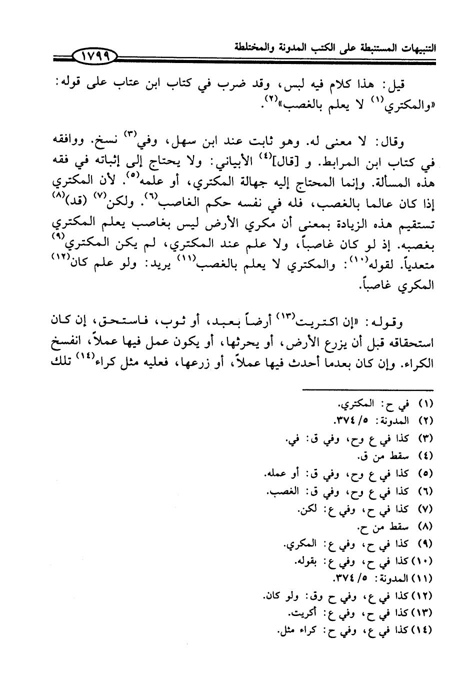 وقال: لا معنى له. وهو ثابت عند ابن سهل، وفي (¬3) نسخ. ووافقه في كتاب ابن المرابط. و [قال] (¬4) الأبياني: ولا يحتاج إلى إثباته في فقه هذه المسألة. وإنما المحتاج إليه جهالة المكتري، أو علمه (¬5). لأن المكتري إذا كان عالما بالغصب، فله في نفسه حكم الغاصب (¬6). ولكن (¬7) (قد) (¬8) تستقيم هذه الزيادة بمعنى أن مكري الأرض ليس بغاصب يعلم المكتري بغصبه. إذ لو كان غاصباً، ولا علم عند المكتري، لم يكن المكتري (¬9) متعدياً. لقوله (¬10): والمكتري لا يعلم بالغصب (¬11) يريد: ولو علم كان (¬12) المكري غاصباً.