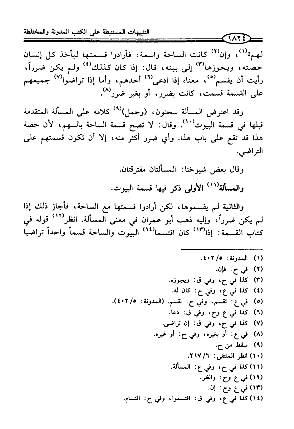 والثانية لم يقسموها، لكن أرادوا قسمتها مع الساحة، فأجاز ذلك إذا لم يكن ضرراً، وإليه ذهب أبو عمران في معنى المسألة. انظر (¬12) قوله في كتاب القسمة: إذا (¬13) كان اقتسما (¬14) البيوت والساحة قسماً واحداً تراضيا