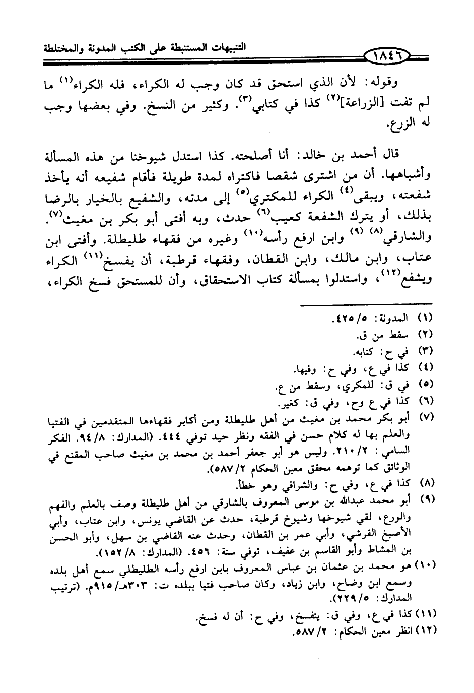 (¬7) أبو بكر محمد بن مغيث من أهل طليطلة ومن أكابر فقهاءها المتقدمين في الفتيا والعلم بها له كلام حسن في الفقه ونظر حيد توفي 444. (المدارك: 8/ 94.الفكر السامي: 2/ 210. وليس هو أبو جعفر أحمد بن محمد بن مغيث صاحب المقنع في الوثائق كما توهمه محقق معين الحكام 2/ 587).