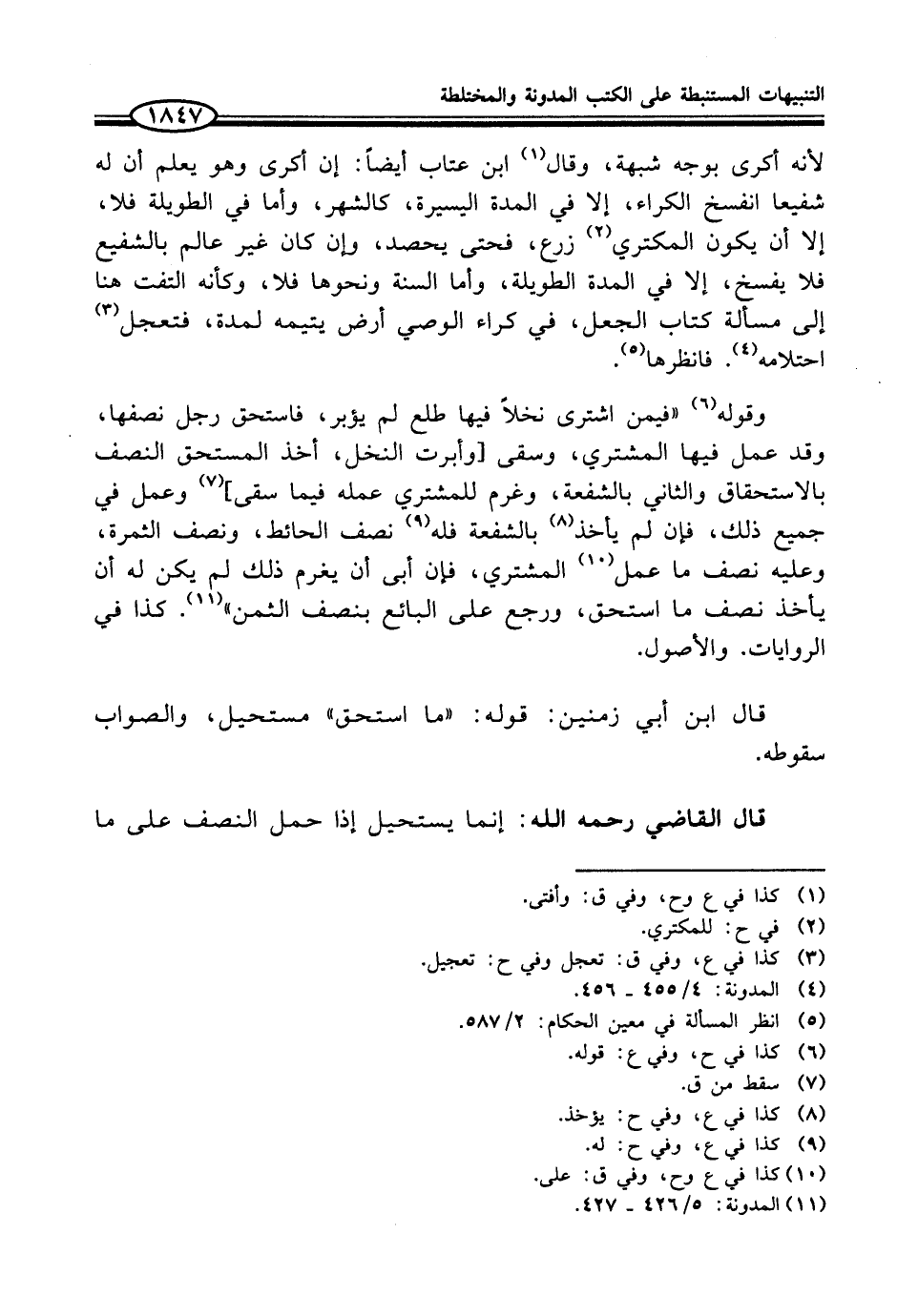 وقوله (¬6) "فيمن اشترى نخلاً فيها طلع لم يؤبر، فاستحق رجل نصفها، وقد عمل فيها المشتري، وسقى [وأبرت النخل، أخذ المستحق النصف بالاستحقاق والثاني بالشفعة، وغرم للمشتري عمله فيما سقى] (¬7) وعمل في جميع ذلك، فإن لم يأخذ (¬8) بالشفعة فله (¬9) نصف الحائط، ونصف الثمرة، وعليه نصف ما عمل (¬10) المشتري، فإن أبى أن يغرم ذلك لم يكن له أن يأخذ نصف ما استحق، ورجع على البائع بنصف الثمن" (¬11). كذا في الروايات. والأصول.