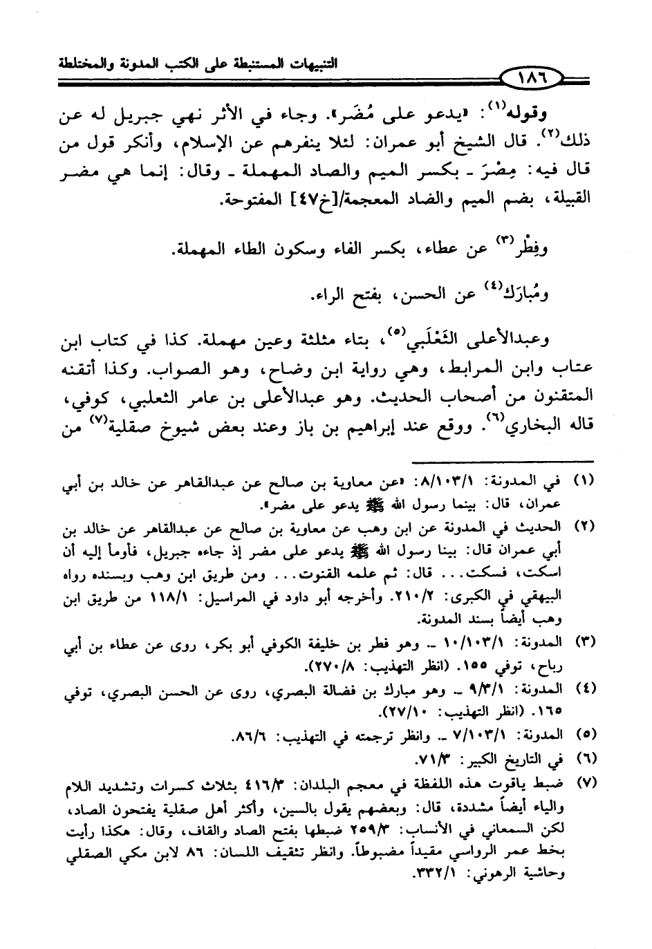 (¬4) المدونة: 1/ 3/ 9 - وهو مبارك بن فضالة البصري، روى عن الحسن البصري، توفي 165 - (انظر التهذيب: 10/ 27).