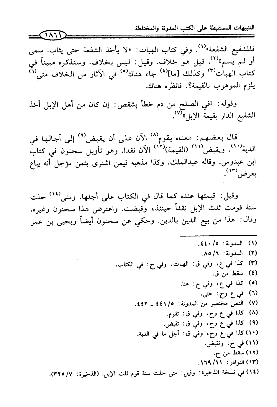 (¬14) في نسخة الذخيرة: وقيل: متى حلت سنة قوم ثلث الإبل. (الذخيرة: 7/ 325).