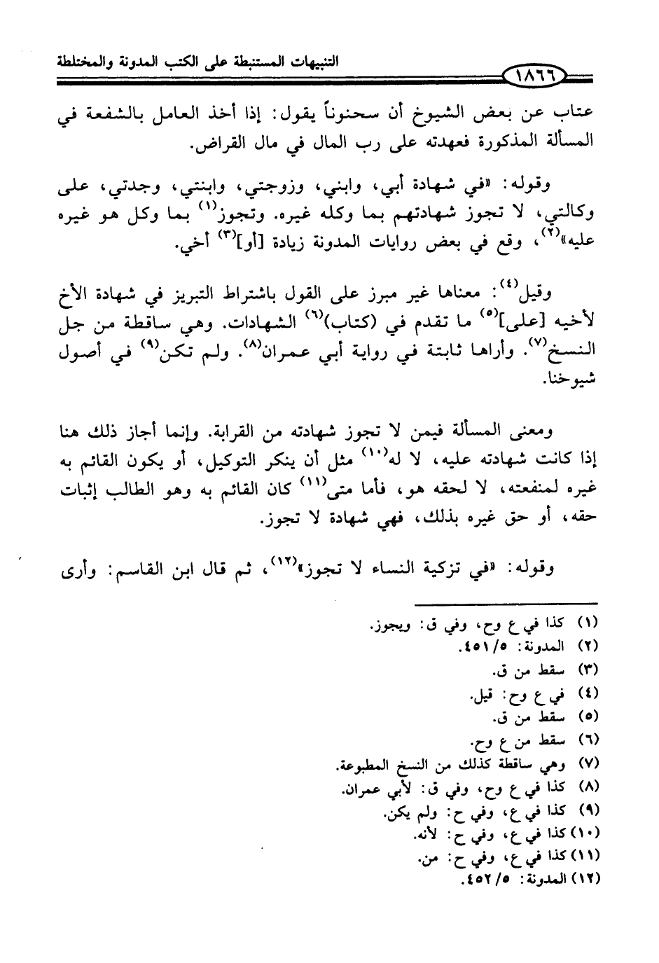 وقيل (¬4): معناها غير مبرز على القول باشتراط التبريز في شهادة الأخ لأخيه [على] (¬5) ما تقدم في (كتاب) (¬6) الشهادات. وهي ساقطة من جل النسخ (¬7). وأراها ثابتة في رواية أبي عمران (¬8). ولم تكن (¬9) في أصول شيوخنا.