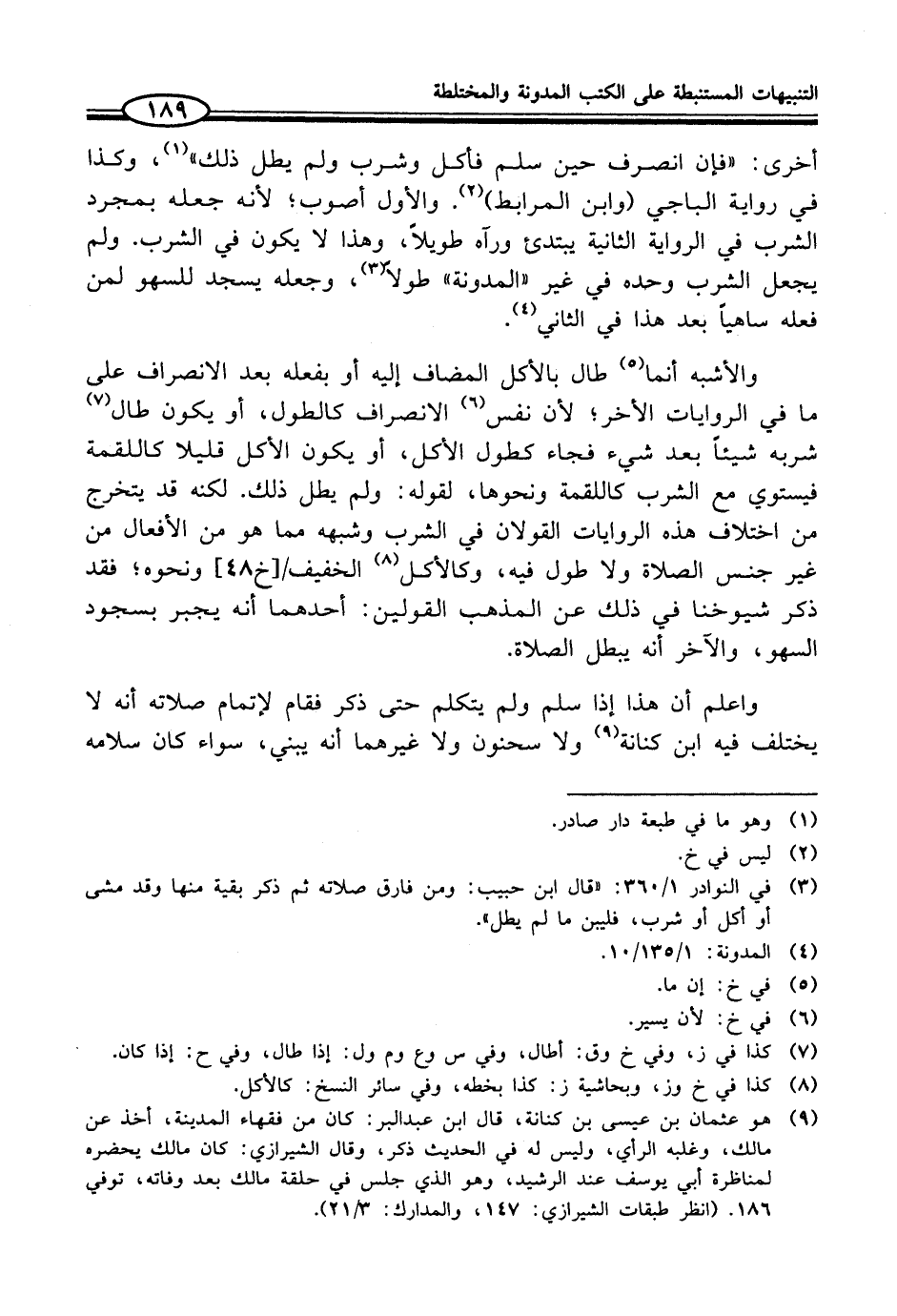 (¬9) هو عثمان بن عيسى بن كنانة، قال ابن عبد البر: كان من فقهاء المدينة، أخذ عن مالك، وغلبه الرأي، وليس له في الحديث ذكر، وقال الشيرازي: كان مالك يحضره لمناظرة أبي يوسف عند الرشيد، وهو الذي جلس في حلقة مالك بعد وفاته، توفي 186. (انظر طبقات الشيرازي: 147، والمدارك: 3/ 21).