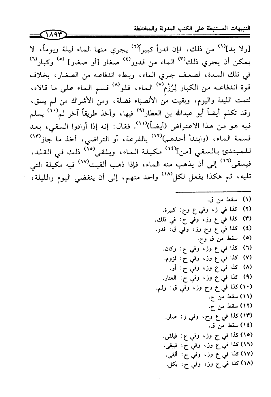 [ولا بد] (¬1) من ذلك، فإن قدراً كبيراً (¬2) يجري منها الماء ليلة ويوماً، لا يمكن أن يجري ذلك (¬3) الماء من قدور (¬4) صغار [أو صغار] (¬5) وكبار (¬6) في تلك المدة، لضعف جري الماء، وبطء اندفاعه من الصغار، بخلاف قوة اندفاعه من الكبار لِرُزْمِ (¬7) الماء، فلو (¬8) قسم الماء على ما قالاه، لتمت الليلة واليوم، وبقيت من الأنصباء فضلة، ومن الأشراك من لم يسق، وقد تكلم أيضاً أبو عبد الله بن العطار (¬9) فيها، وأخذ طريقاً آخر لم (¬10) يسلم فيه هو من هذا الاعتراض (أيضاً) (¬11). فقال: إنه إذا أرادوا السقي، بعد قسمة الماء، (وابتدأ أحدهم) (¬12) بالقرعة، أو التراضي، أخذ ما جاز (¬13) للمبتدئ بالسقي [من] (¬14) مكيلة الماء، ويلقى (¬15) ذلك في القلد، فيسقى (¬16) إلى أن يذهب منه الماء، فإذا ذهب ألقيت (¬17) فيه مكيلة الضي تليه، ثم هكذا يفعل لكل (¬18) واحد منهم، إلى أن ينقضي اليوم والليلة،