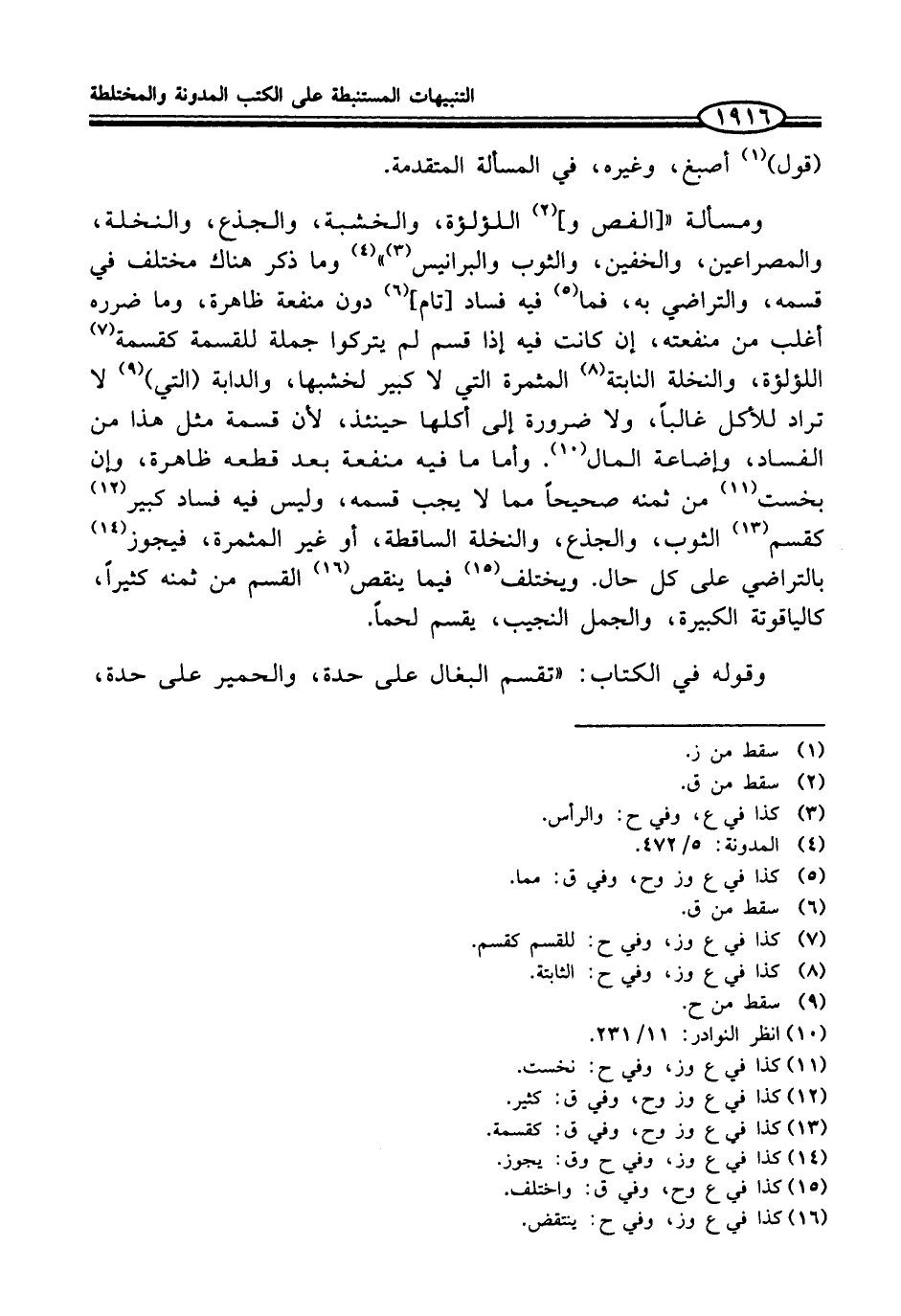 (¬13) كذا في ع وز وح، وفي ق: كقسمة.