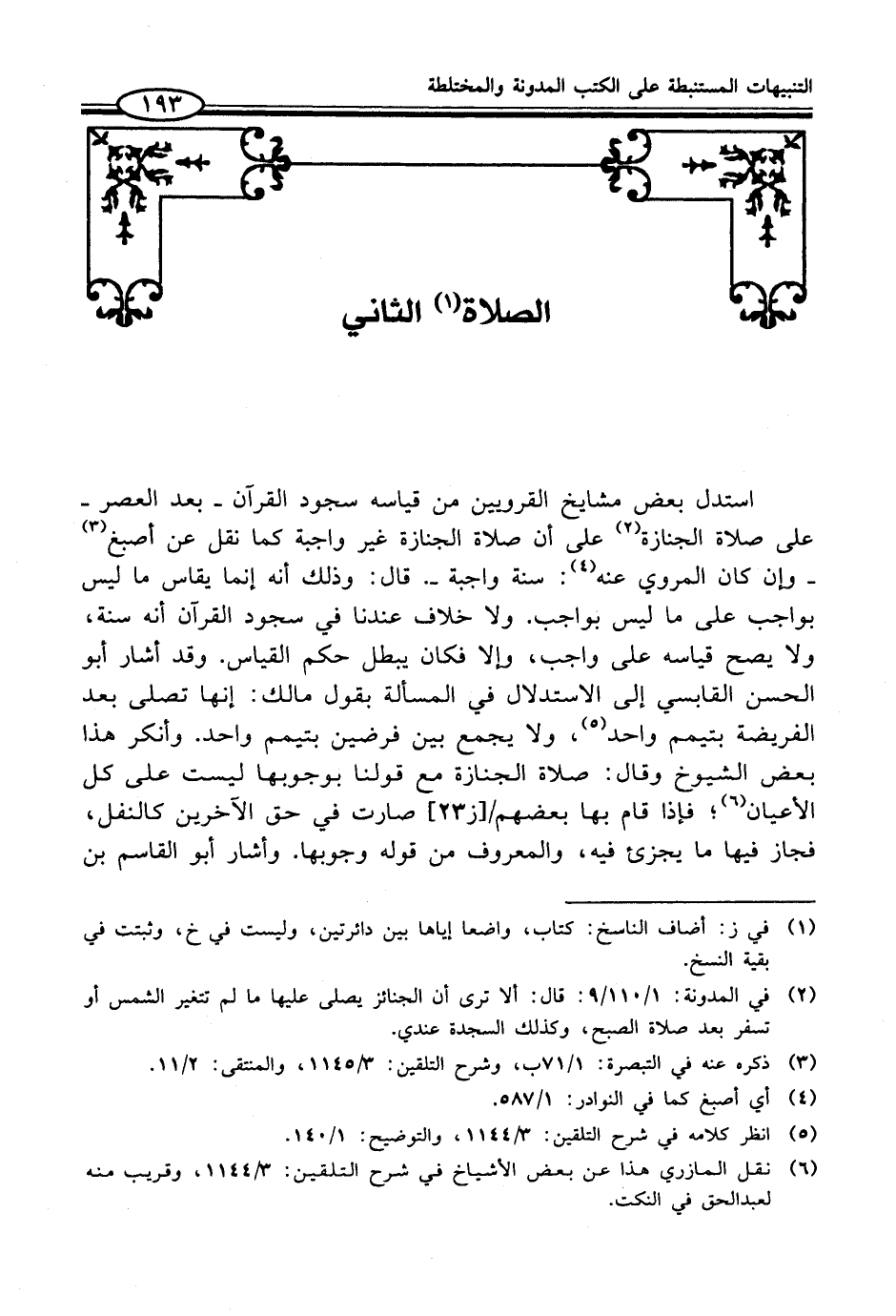 (¬6) نقل المازري هذا عن بعض الأشياخ في شرح التلقين: 3/ 1144، وقريب منه لعبد الحق في النكت.