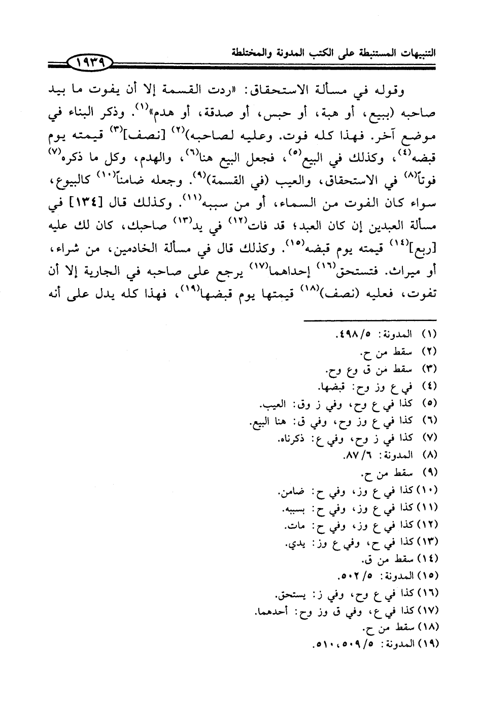 (¬19) المدونة: 5/ 509، 510.