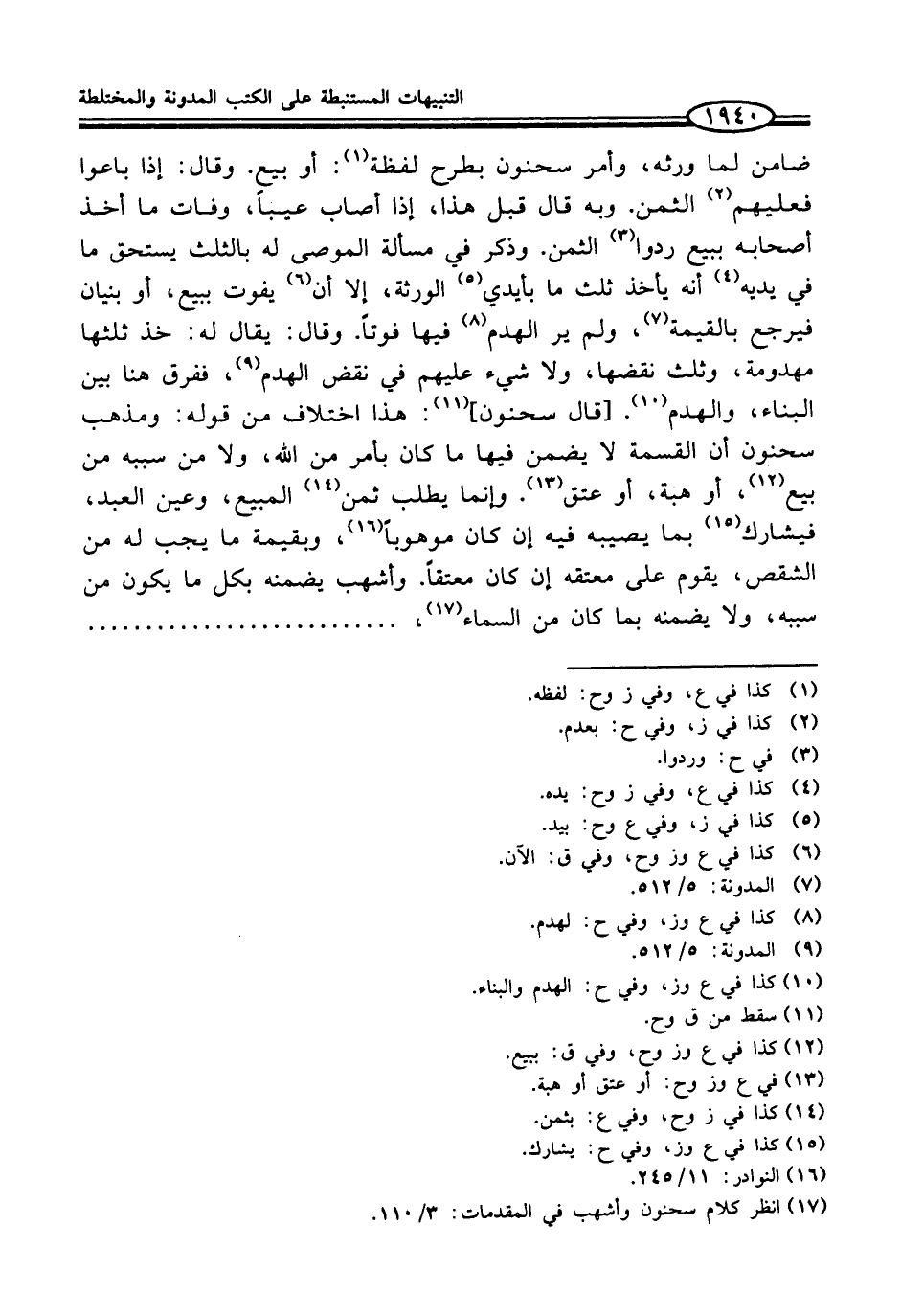 (¬17) انظر كلام سحنون وأشهب في المقدمات: 3/ 110.