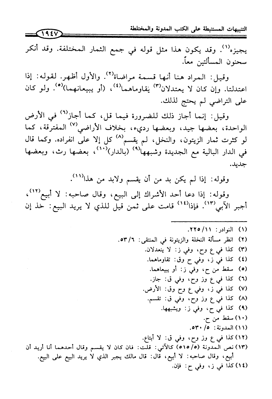 (¬2) انظر مسألة النخلة والزيتونة في المنتقى: 6/ 53.