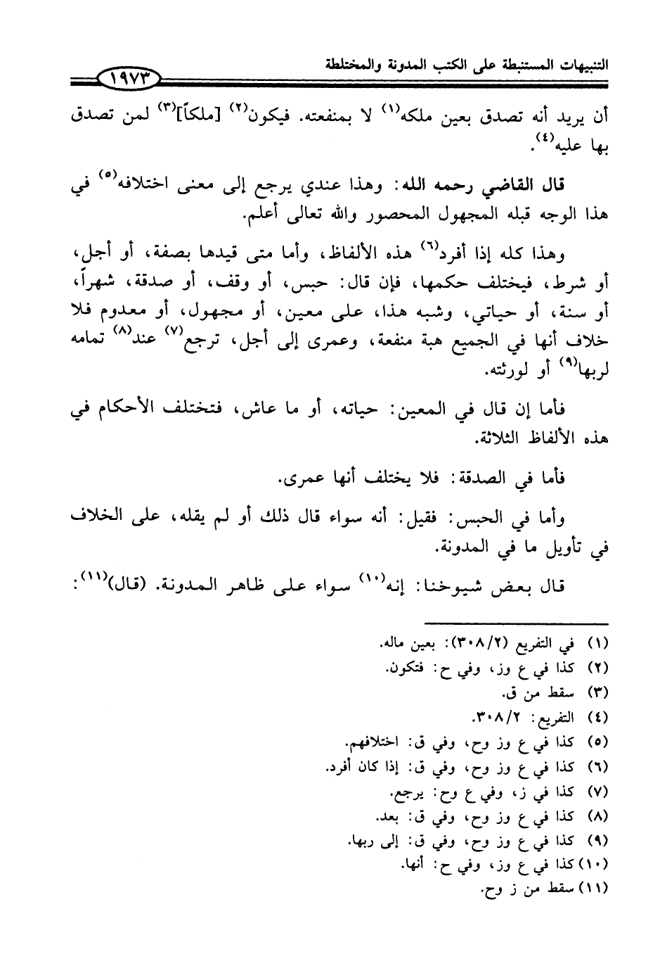 وهذا كله إذا أفرد (¬6) هذه الألفاظ، وأما متى قيدها بصفة، أو أجل، أو شرط، فيختلف حكمها، فإن قال: حبس، أو وقف، أو صدقة، شهراً، أو سنة، أو حياتي، وشبه هذا، على معين، أو مجهول، أو معدوم فلا خلاف أنها في الجميع هبة منفعة، وعمرى إلى أجل، ترجع (¬7) عند (¬8) تمامه لربها (¬9) أو لورثته.
