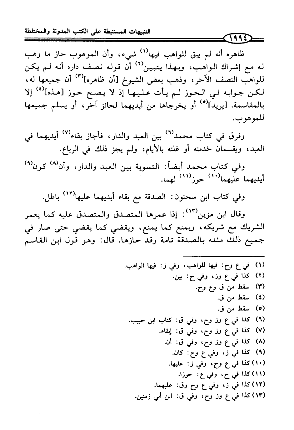 وفي كتاب محمد أيضاً: التسوية بين العبد والدار، وأن (¬8) كون (¬9) أيديهما عليهما (¬10) حوز (¬11) لهما.