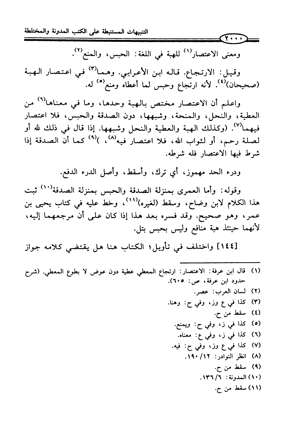(¬1) قال ابن عرفة: الاعتصار: ارتجاع المعطي عطية دون عوض لا بطوع المعطي. (شرح حدود ابن عرفة، ص: 605).