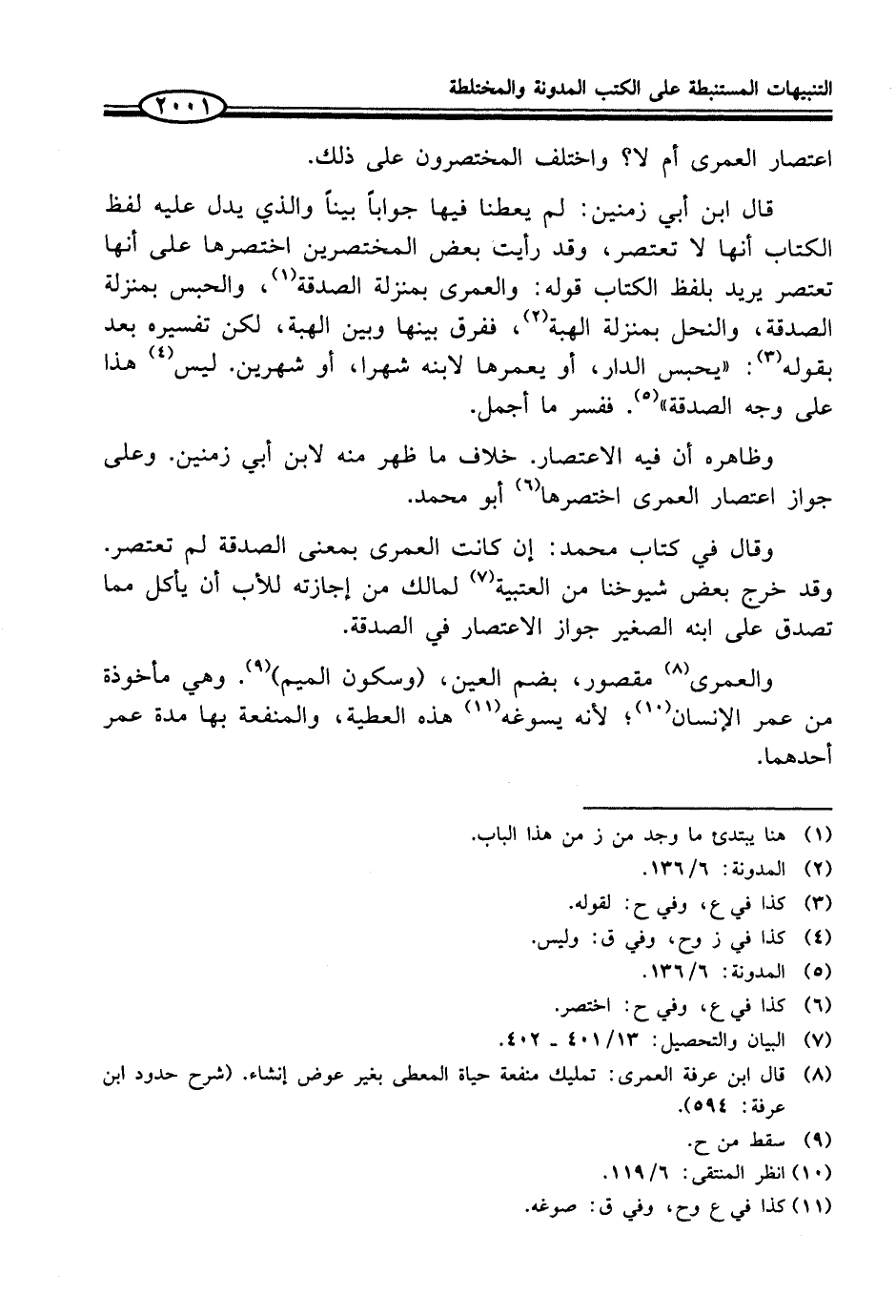 وظاهره أن فيه الاعتصار. خلاف ما ظهر منه لابن أبي زمنين. وعلى جواز اعتصار العمرى اختصرها (¬6) أبو محمد.