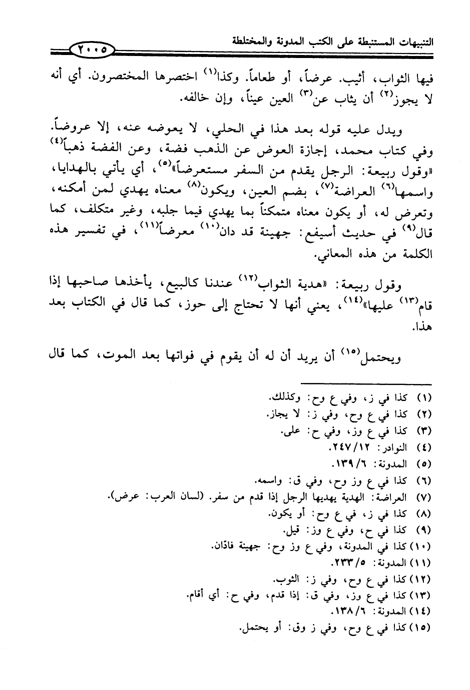 ويدل عليه قوله بعد هذا في الحلي، لا يعوضه عنه، إلا عروضاً. وفي كتاب محمد، إجازة العوض عن الذهب فضة، وعن الفضة ذهباً (¬4) "وقول ربيعة: الرجل يقدم من السفر مستعرضاً" (¬5)، أي يأتي بالهدايا، واسمها (¬6) العراضة (¬7)، بضم العين، ويكون (¬8) معناه يهدي لمن أمكنه، وتعرض له، أو يكون معناه متمكناً بما يهدي فيما جلبه، وغير متكلف، كما قال (¬9) في حديث أسيفع: جهينة قد دان (¬10) معرضاً (¬11)، في تفسير هذه الكلمة من هذه المعاني.