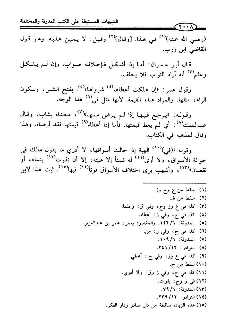 (¬5) المدونة: 6/ 142. والمقصود بعمر: عمر بن عبد العزيز.