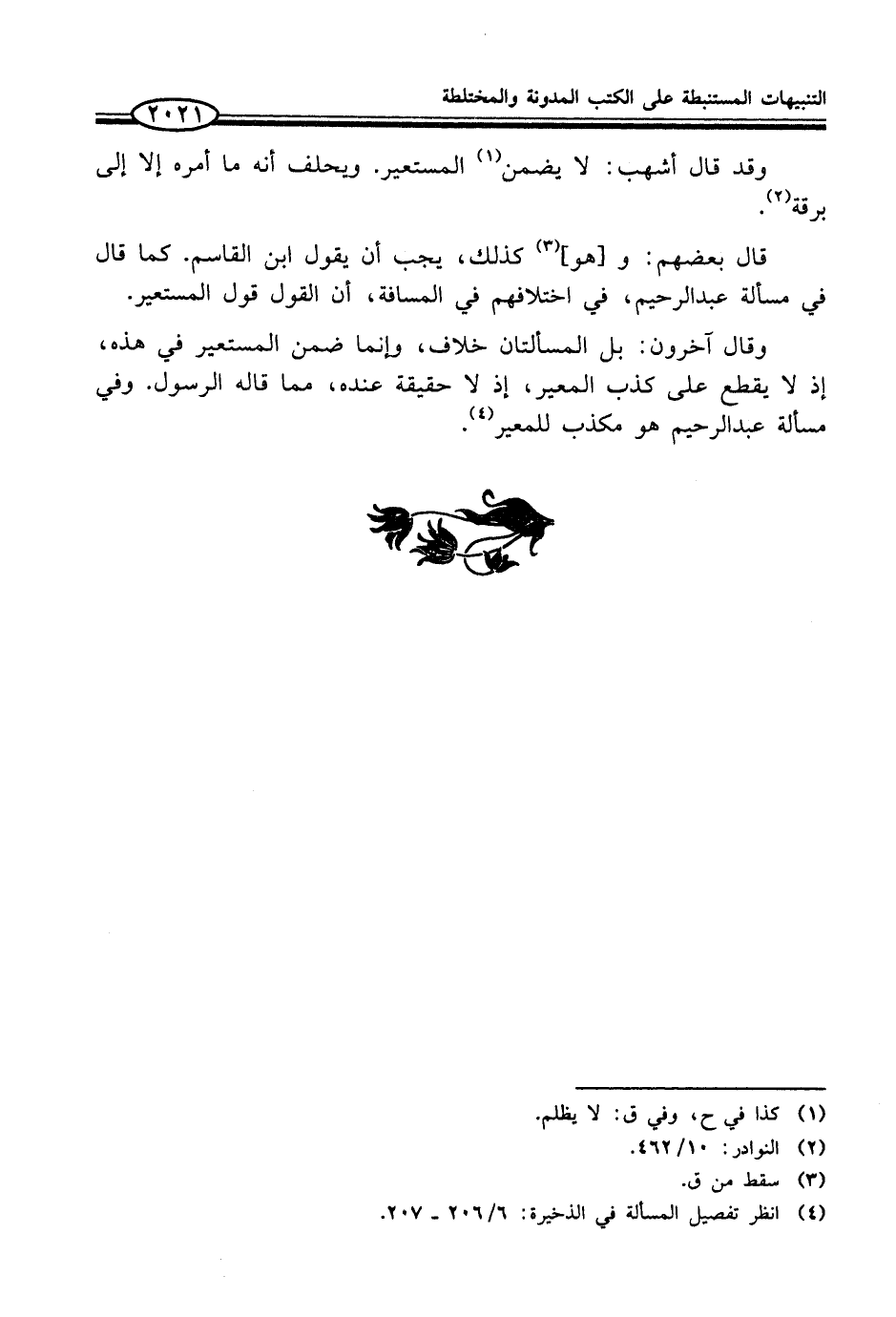 (¬4) انظر تفصيل المسألة في الذخيرة: 6/ 206 - 207.