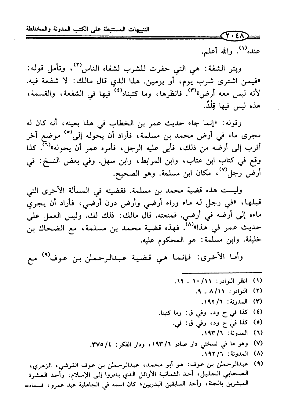 (¬8) المدونة: 6/ 192.