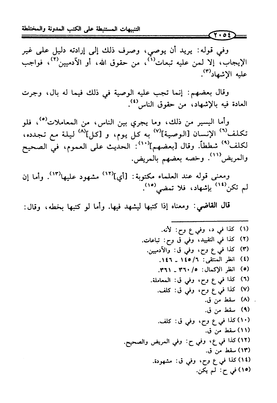 وأما اليسير من ذلك، وما يجري بين الناس، من المعاملات (¬5)، فلو تكلف (¬6) الإنسان [الوصية] (¬7) به كل يوم، و [كل] (¬8) ليلة مع تجدده، لكلف (¬9) شططاً. وقال [بعضهم] (¬10): الحديث على العموم، في الصحيح والمريض (¬11). وخصه بعضهم بالمريض.
