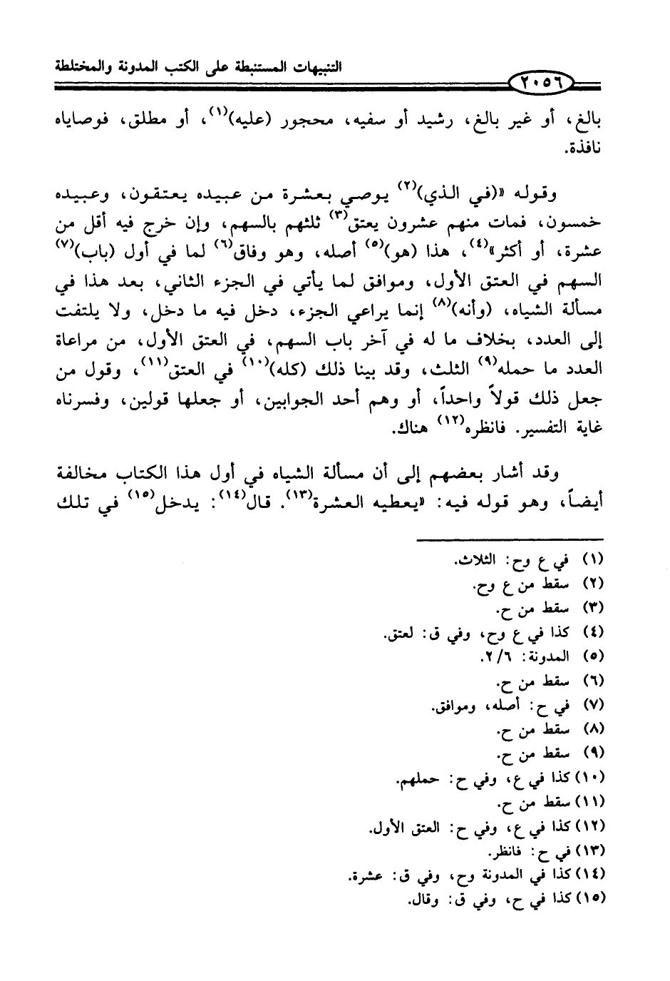 وقوله " (في الذي) (¬2) يوصي بعشرة من عبيده يعتقون، وعبيده خمسون، فمات منهم عشرون يعتق (¬3) ثلثهم بالسهم، وإن خرج فيه أقل من عشرة، أو أكثر" (¬4)، هذا (هو) (¬5) أصله، وهو وفاق (¬6) لما في أول (باب) (¬7) السهم في العتق الأول، وموافق لما يأتي في الجزء الثاني، بعد هذا في مسألة الشياه، (وأنه) (¬8) إنما يراعي الجزء، دخل فيه ما دخل، ولا يلتفت إلى العدد، بخلاف ما له في آخر باب السهم، في العتق الأول، من مراعاة العدد ما حمله (¬9) الثلث، وقد بينا ذلك (كله) (¬10) في العتق (¬11)، وقول من جعل ذلك قولاً واحداً، أو وهم أحد الجوابين، أو جعلها قولين، وفسرناه غاية التفسير. فانظره (¬12) هناك.