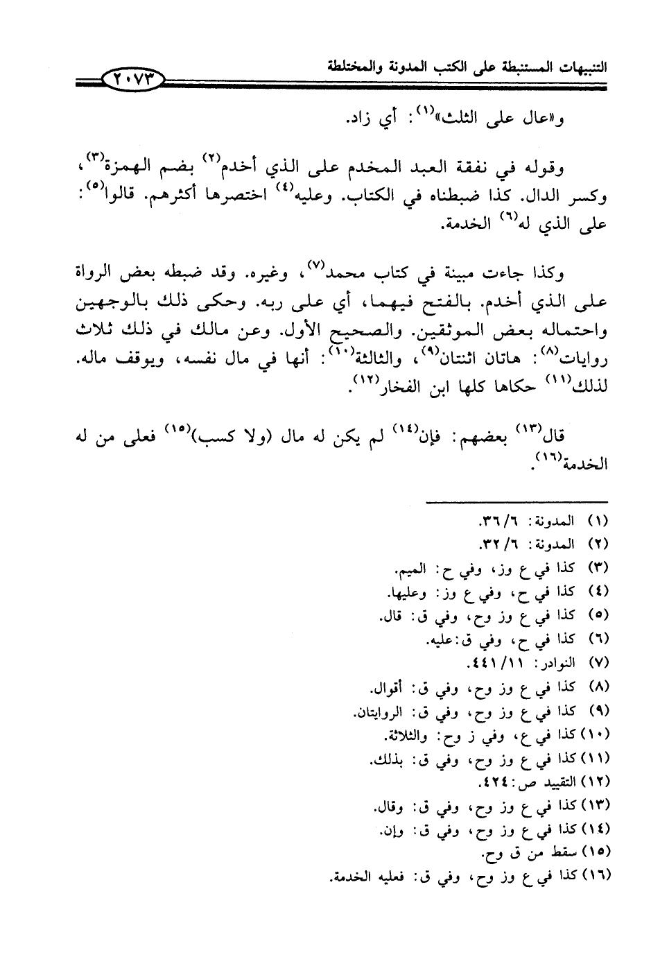 وكذا جاءت مبينة في كتاب محمد (¬7)، وغيره. وقد ضبطه بعض الرواة على الذي أخدم. بالفتح فيهما، أي على ربه. وحكى ذلك بالوجهين واحتماله بعض الموثقين. والصحيح الأول. وعن مالك في ذلك ثلاث روايات (¬8): هاتان اثنتان (¬9)، والثالثة (¬10): أنها في مال نفسه، ويوقف ماله. لذلك (¬11) حكاها كلها ابن الفخار (¬12).