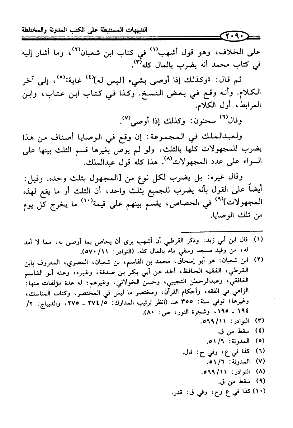 ولعبد الملك في المجموعة: إن وقع في الوصايا أصناف من هذا يضرب للمجهولات كلها بالثلث، ولو لم يوص بغيرها قسم الثلث بينها على السواء على عدد المجهولات (¬8). هذا كله قول عبد الملك.
