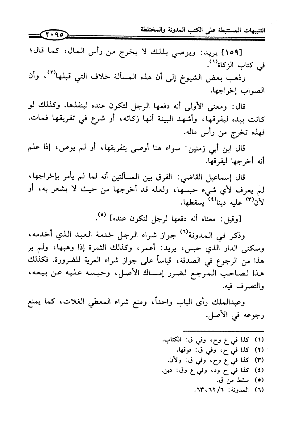 [159] يريد: ويوصي بذلك لا يخرج من رأس المال، كما قال؛ في كتاب الزكاة (¬1).