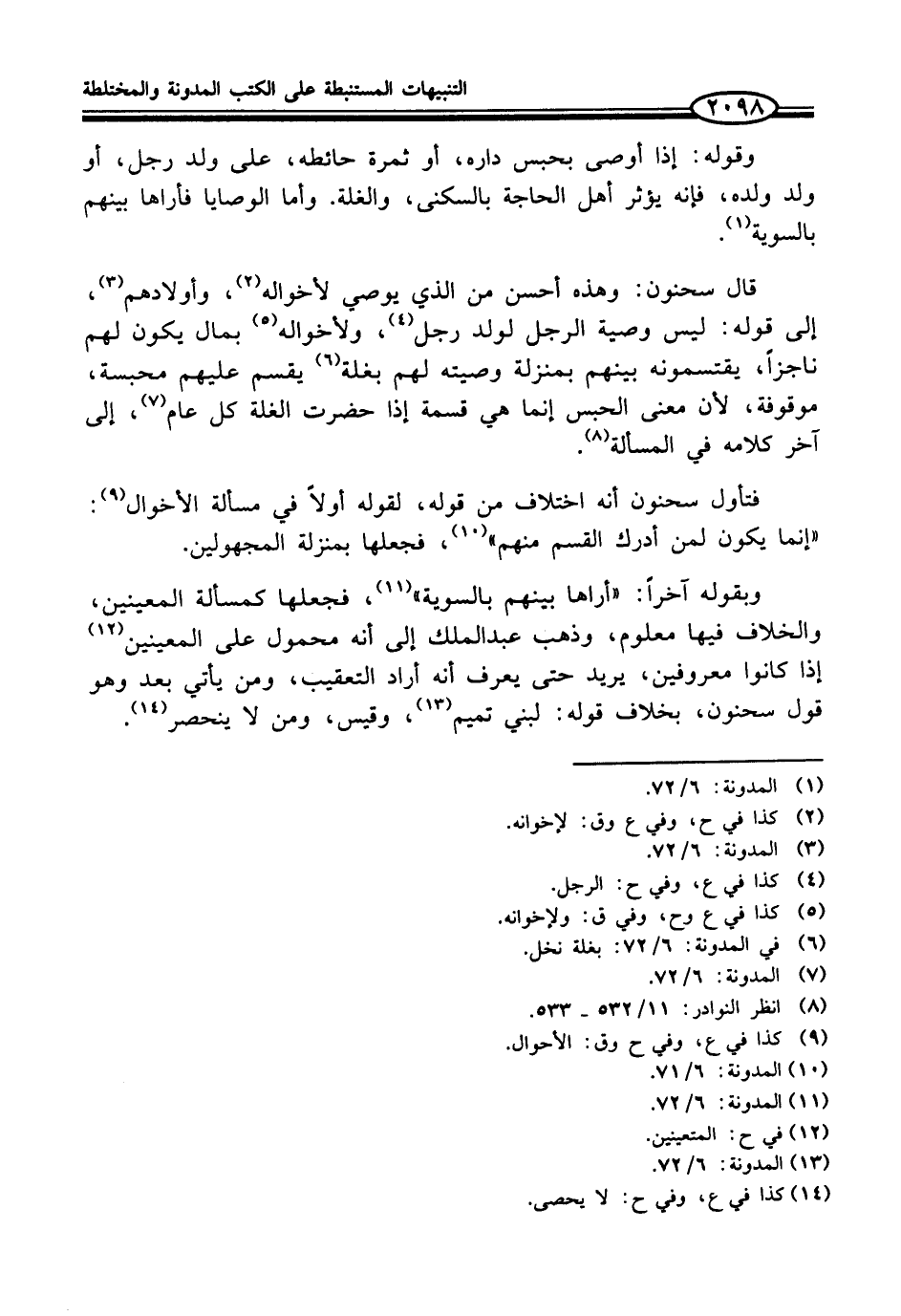 (¬13) المدونة: 6/ 72.