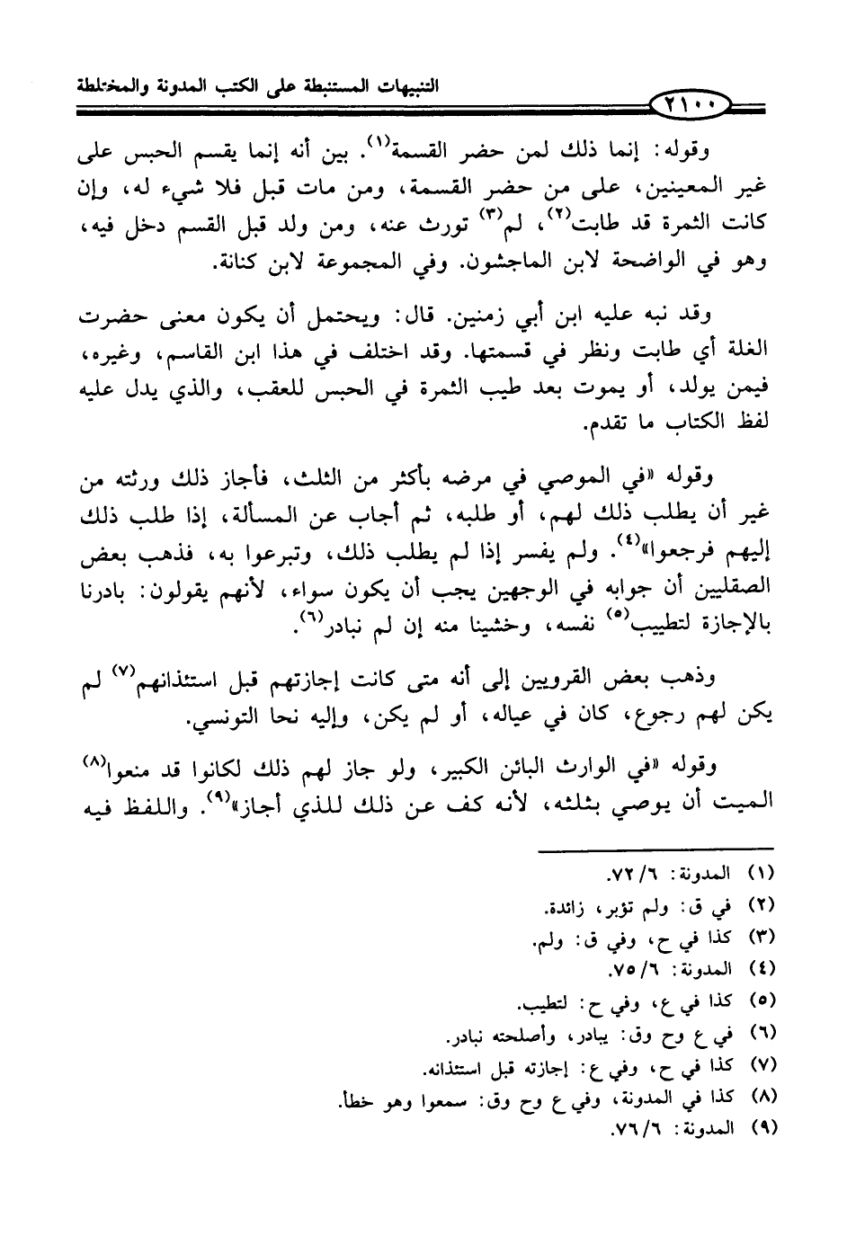 وقوله: إنما ذلك لمن حضر القسمة (¬1). بين أنه إنما يقسم الحبس على غير المعينين، على من حضر القسمة، ومن مات قبل فلا شيء له، وإن كانت الثمرة قد طابت (¬2)، لم (¬3) تورث عنه، ومن ولد قبل القسم دخل فيه، وهو في الواضحة لابن الماجشون. وفي المجموعة لابن كنانة.