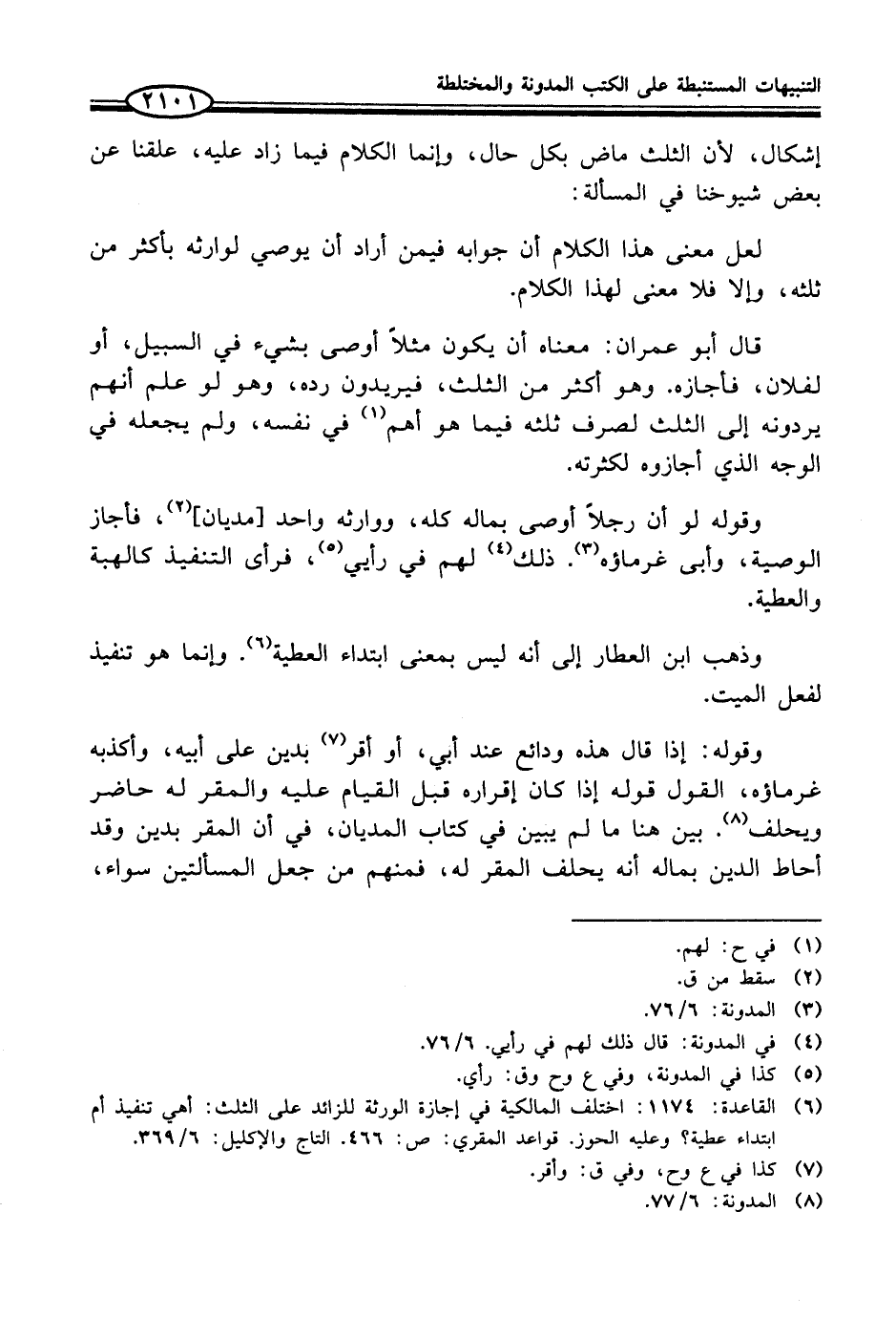 (¬6) القاعدة: 1174: اختلف المالكية في إجازة الورثة للزائد على الثلث: أهي تنفيذ أم ابتداء عطية؟ وعليه الحوز. قواعد المقري: ص: 466. التاج والإكليل: 6/ 369.