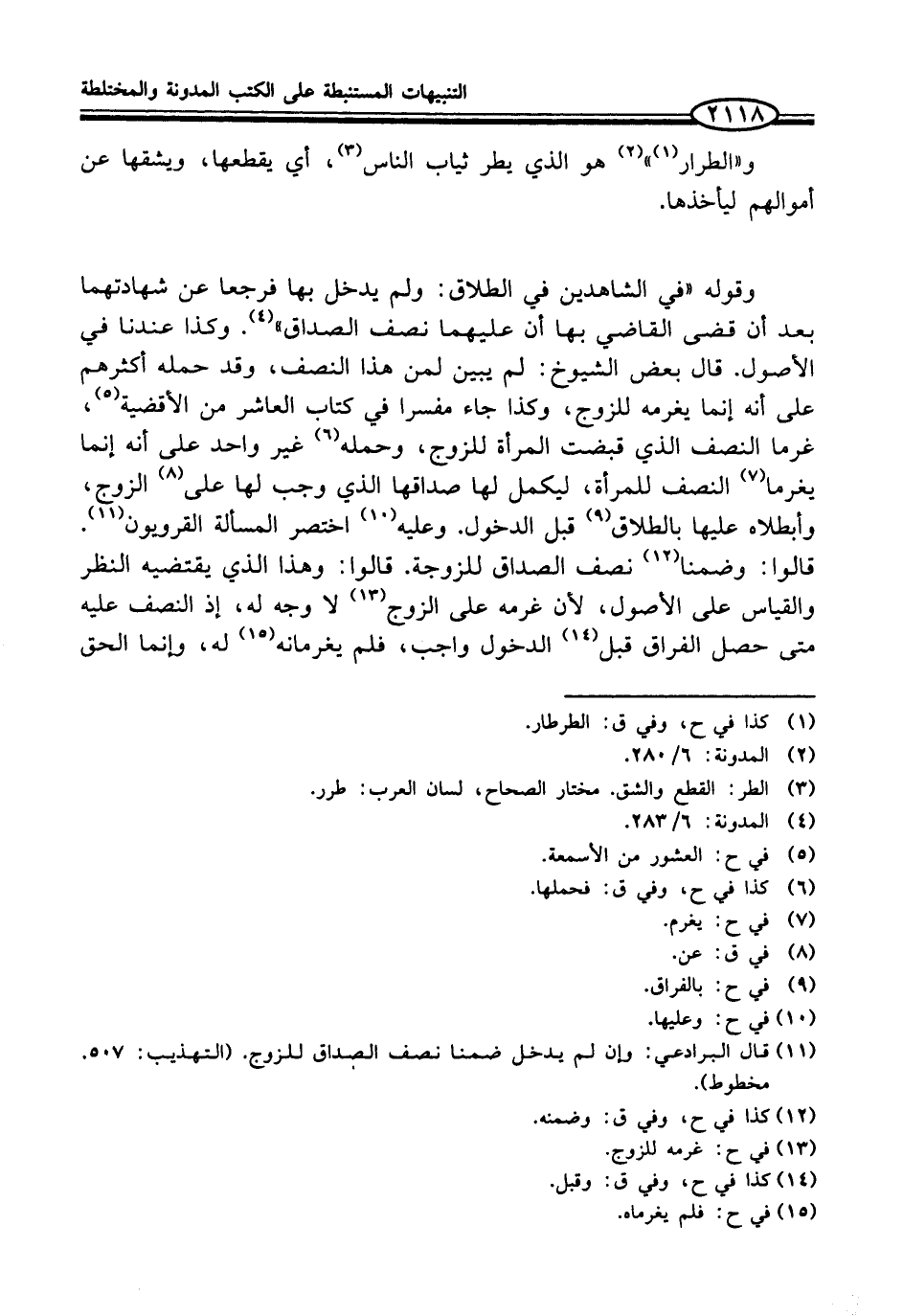 (¬11) قال البرادعي: وإن لم يدخل ضمنا نصف الصداق للزوج. (التهذيب: 507. مخطوط).