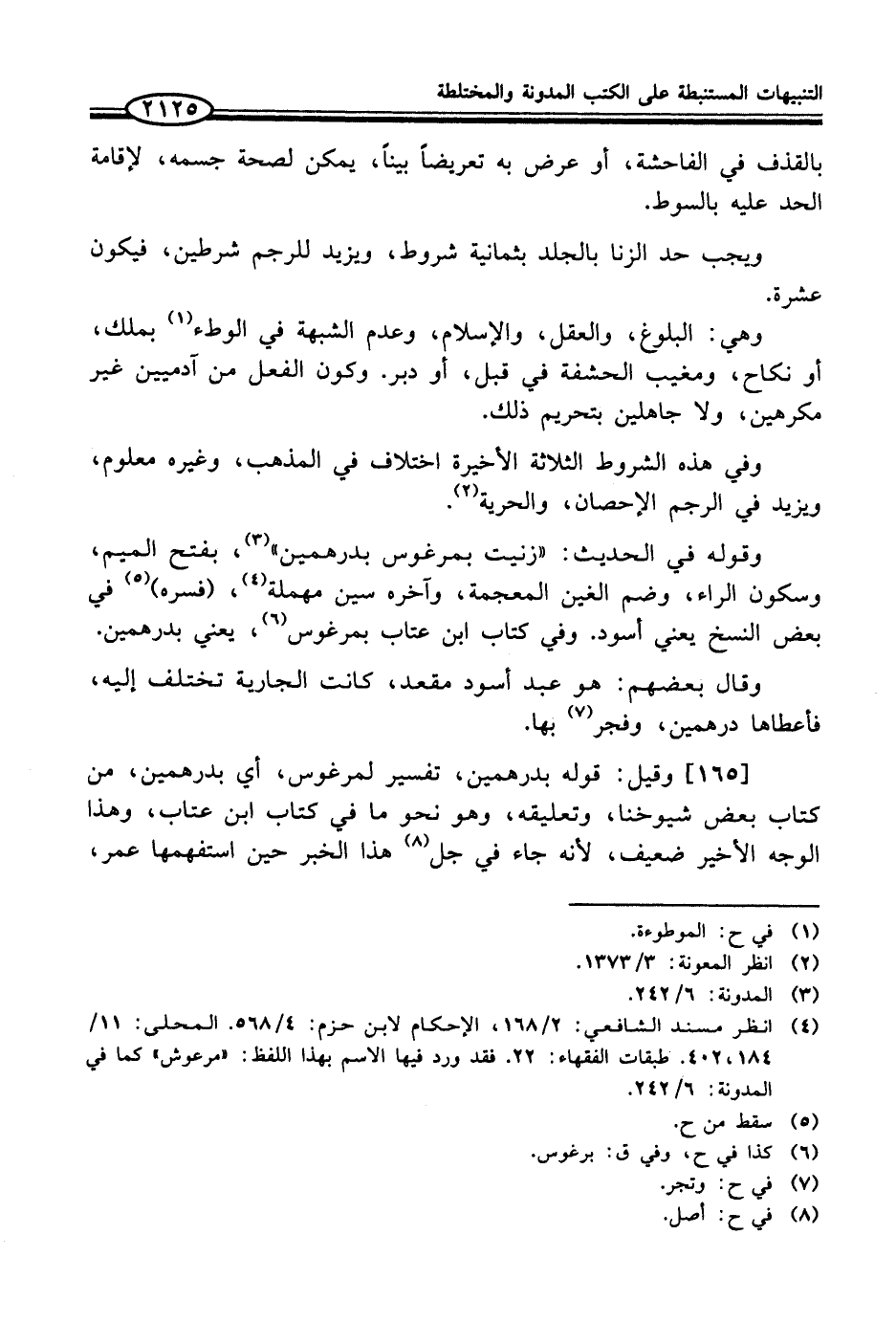 وفي هذه الشروط الثلاثة الأخيرة اختلاف في المذهب، وغيره معلوم، ويزيد في الرجم الإحصان، والحرية (¬2).