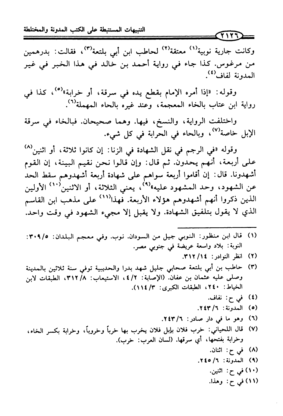 واختلفت الرواية، والنسخ، فيها. وهما صحيحان. فبالخاء في سرقة الإبل خاصة (¬7)، وبالحاء في الحرابة في كل شيء.