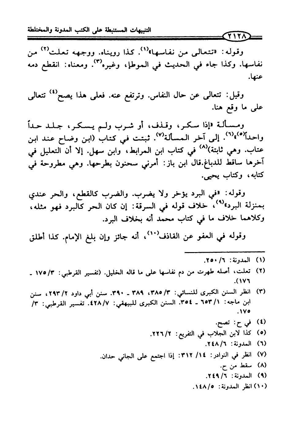 ومسألة "إذا سكر، وقذف، أو شرب ولم يسكر، جلد حداً واحداً (¬5) " (¬6). إلى آخر المسألة (¬7). ثبتت في كتاب (ابن وضاح عند ابن عتاب. وهي ثابتة) (¬8) في كتاب ابن المرابط، وابن سهل. إلا أن التعليل في آخرها ساقط للدباغ. قال ابن باز: أمرني سحنون بطرحها. وهي مطروحة في كتابه، وكتاب يحيى.