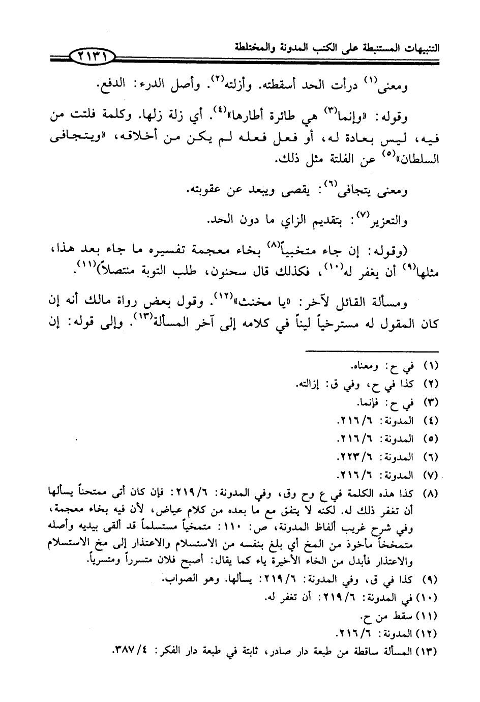 (¬13) المسألة ساقطة من طبعة دار صادر، ثابتة في طبعة دار الفكر: 4/ 387.